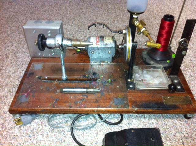 | I have a Fish Hair Enterprises Fine winder for sale. They don't make them any more, but they work great. It is an automatic tying machine. I have two vice cartridges for it, both made by moore's lures. one like a typical fly tying vice to hold hooks, and the other is for holding coils to tie on. This machine has had less than 1000 baits tied on it, and works great! I will try to get a picture uploaded tomorrow. $550 plus shipping or pick up in Hayward, WI.