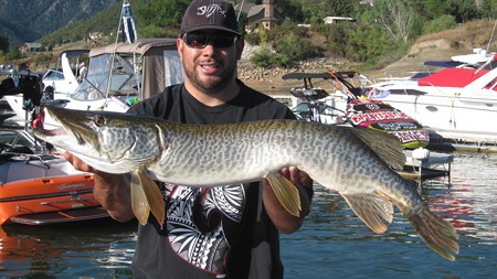 Posts: 532 Location: Ogden, UTAH 10 minutes from pineview reservoir | awesome day at pineview reservoir here in northern utah. I was able to boat a 44" and a 43" in the same area. My buddy also managed a 34" tiger. The 44" slammed a perch colored squirrely hell puppy in 28 fow, gimpy gary as i named him only had 1/4 of his tail left. A little while later I nailed a 43" er on a black perch magnet in 26 fow. I saw another 6-8 muskies either under the docks or in the slips, also saw a big 42-46" surfer. Sad part of the trip was that one of my rod and reel combos some how disappeared, I lost a pimped out shimano curado 300 e and a bad ass okuma rod. Kinda sick about the deal,wish i knew what happened. gotta start saving to replenish that rod, maybe i will get something on wed for my 28th birthday from the wifey! (ya right she doesnt know what my gear is worth lol) #*^@ i am getting old. well pv was good to me today! 87" of tiger = $333.93 for rod, reel, and gas Attachments ---------------- IMG_1694 (Copy).JPG (61KB - 1031 downloads) 43 in 9-3-12 (Copy).JPG (52KB - 312 downloads) IMG_1695 (Copy).JPG (23KB - 334 downloads) | ||