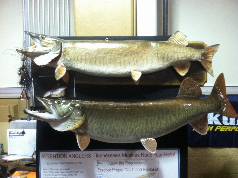 Posts: 1352 Location: E. Tenn | Took this pic at last year's Knoxville TN fishing show. The top one is a skin mount, the bottom is a replica Attachments ---------------- 039 (1024x765) (2) (800x598).jpg (271KB - 2127 downloads) | ||