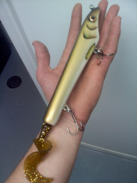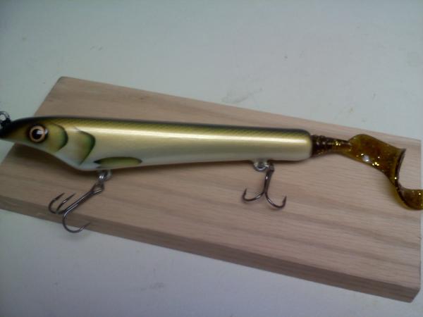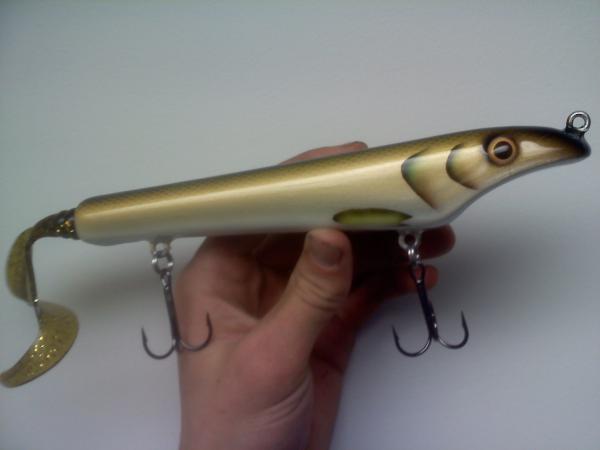 Posts: 99 | ceadar, 8 inches without tail 12 inches with the tail Ive been thinking about making this bait for a while and finally got around to it it. Hoping for some scratches on it next season. Attachments ---------------- diverise1.jpg (20KB - 269 downloads) diverise2.jpg (16KB - 397 downloads) diverise3.jpg (23KB - 311 downloads) diverise4.jpg (20KB - 251 downloads) diverise5.jpg (18KB - 274 downloads) | ||
