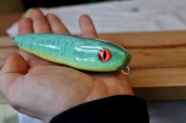 More Muskie Fishing -> Basement Baits and Custom Lure Painting -> My Adder top water lures