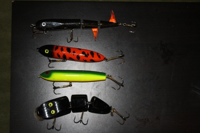 Posts: 295 | Shipping depends on what you want, get a few things and i'll probably cover it, I don't want to make money from shipping. PayPal only please, no fees I'm not accounting for them. PM if interested. Thanks, Bryant Pic#1 Rubbers: Black HellKat, $12 Motoroil Orange Hellkat, $12 Green/Gold Red October 10" Twisted Tube. $8 Pic#2 Red October 12" Big Sexy Tubes, all come as is in pic unrigged. Most are new. Green Pumpkin, heavier dipped. $9 2 Custom Monkey Puke (Pumpkin over chartreuse, looks sweet). $9 each 2 Custom Gold Head/Chartreuse Tails. $9 each Chartreuse, heavier dipped. $9 Black. $9 White/Clear coat, lightly dipped. $8 Pic#3 Topwaters: Poe's Awaker sold Jitterbug sold Wave Walker Creeper $25 Crazy Crank Rumbler sold Mass Marauder $5 10" Weagle sold Cisko Kid Topper $3 Pic #4 More Topwaters: Hi Fin Prop Bait $12 Baby Doc sold Jackpot sold Locomotive $13 Pic #5: Sea Calf $5 8" Jake $6 Squirrely Burt no tail sold Gapens Polish Shad $7 Baby Depthraider sold Mugnum fuzzy Duzzit sold Magnum Fuzzy Duzzit sold Wagner Special $13 Sebile Magic Swimmer $22 Picture #6: Legend Plow, barely fished just enough to tune, then sent out for a brand new walleye paint job from Ziggie. Never fished with the new paint job. Looks Great $65 Pic #7: Original 14" Legend Lure firetiger, used the paint is chipped on the front lip. sold Shorty DB10 Replica, paint is cracking, fairly well used. $13 Edited by bryantukkah 3/5/2013 1:49 PM Attachments ---------------- IMG_3592 (400x267).jpg (84KB - 160 downloads) IMG_3603 (400x267).jpg (94KB - 167 downloads) IMG_3599 (400x267).jpg (92KB - 168 downloads) IMG_3602 (400x267).jpg (82KB - 179 downloads) IMG_3600 (400x267).jpg (96KB - 169 downloads) IMG_3589 (400x267).jpg (69KB - 157 downloads) IMG_3597 (400x267).jpg (81KB - 167 downloads) | ||
