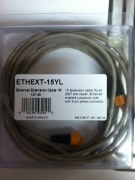"15' Extension cable fits all 2007 and newer Ethernet enabled Lowrance units with 5-pin yellow connector"