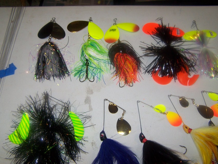 it is made by Toothy's muskie baits,called a tickler.It has 3 single hooks on a rotating plate with grubs that make it like a medusa.Very interesting bait.Also the muskie. safari twin bladed spinnerbait black/green blades called a tandem serial killer