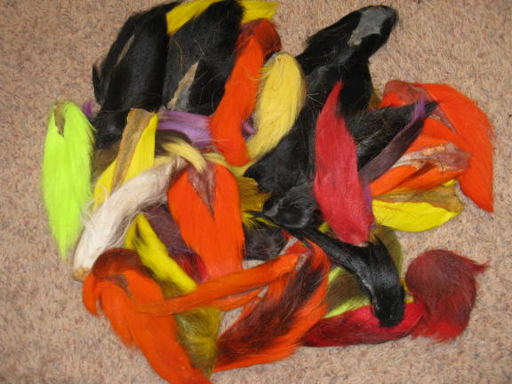 Lot of 38 dyed assorted size deer tails. $100