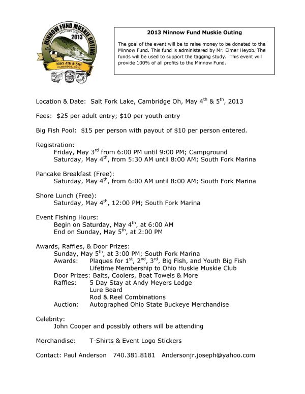 | Jump to page : 1 Now viewing page 1 [30 messages per page] More Muskie Fishing -> Muskie Club Information and Announcements -> Ohio Minnow Fund Outing |