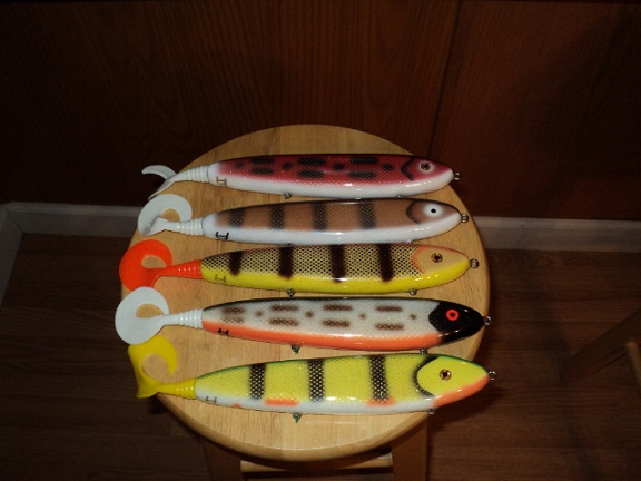 Muskie Fishing -> Buy , Sell, and Trade -> jered meisterics 10'' crank krushers and hot tails