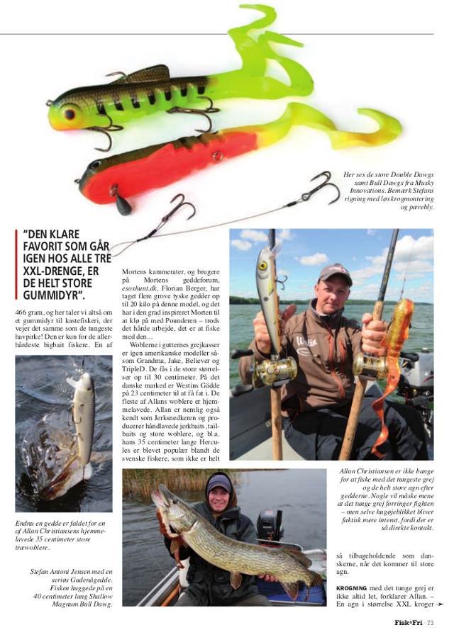 My fishing pal, uses a wire rig on his Dawgs, who should raise the hookup percentage, radically. Sorry for the pics, have to grab them from an article about Bulldawgs written in a Danish Magazine.