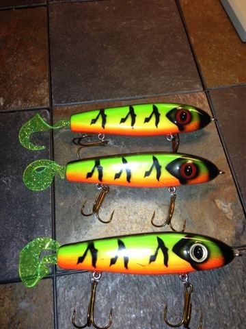 | Jump to page : 1 Now viewing page 1 [30 messages per page] More Muskie Fishing -> Basement Baits and Custom Lure Painting -> Uv tigers |