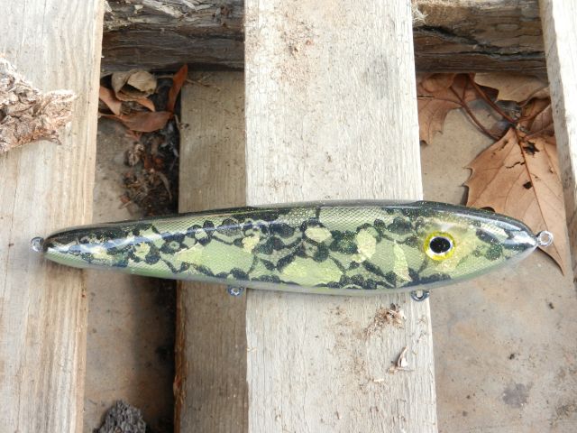 | Jump to page : 1 Now viewing page 1 [30 messages per page] More Muskie Fishing -> Basement Baits and Custom Lure Painting -> 10" wood glider |
