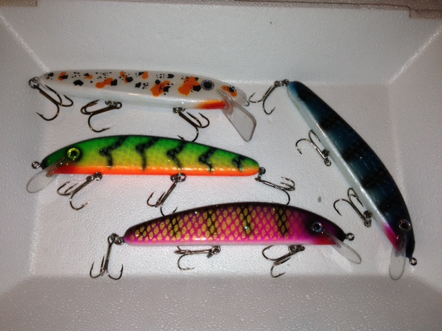 These are all brand new, the big game is custom goldfish pattern and 3 talonz little claws twitch baits. All 4 shipped for $54 in USA. Thanks. BR