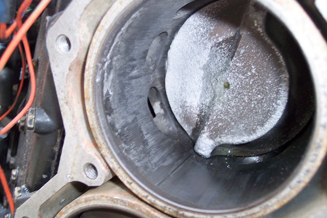 Posts: 260 Location: Almost Heaven | I decided to check the low cylinder on 2 stroke 150 Johnson today. I could not even get any compression. Not good, when i pulled the head the cylinder was coated with metal and the edge of the piston on the left side was missing. Man, that thing got scorched. The motor had a new VRO pump but who knows what happened. The plug had crusty deposits and all the other plugs looked good as well as the other cylinders on that side. What could have cause this and can these motors be reworked? It is a project but i would like to get it going someday. Thanks and tite lines Attachments ---------------- 150GT Johnson 006.JPG (92KB - 166 downloads) 150GT Johnson 001.JPG (99KB - 176 downloads) | ||