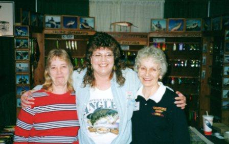 Here is a picture of My wife with Sharon Crane and Rhoda Satanoica . This was in front of our booth at the first Pittsburg musky show hosted by the Three rivers Chapter of Muskies inc. Michelle with the two grand ladies of the musky world. We have been fishing crane baits for about 15 years. We also have some older Grandma lures as well.