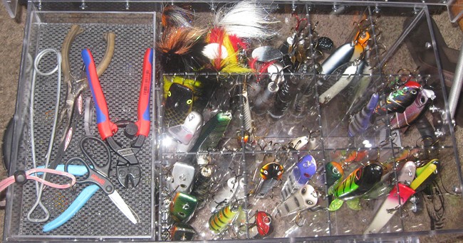 Posts: 8865 | The Justencase boxes are nice. But fill it full of lures and you're not going to want to carry it around. You'll reach a point where there's no possible way you can carry all the lures that you own. I've tried hanging boxes, and they are nice for being able to change lures and keep things organized. But what works best for me is a tackle bag, and a bunch of Plano 3700's. Since you basically use different lures on different lakes at different times of the year, there's no reason to try to bring everything. My bag weighs a ton, but it's the stuff that lives in there - knipex, pliers, jaw spreaders, extra hooks, split rings, camera, spare hat, headlamps, etc. At any one time, I probably only have 30 lures with me, and that's way more than you actually need. | ||