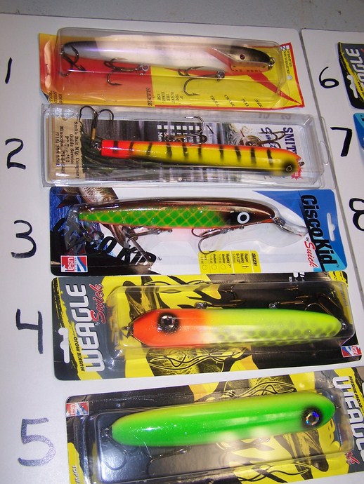 I have these baits for sale.! thru 8 are $15 each.shipping is $3 for the 1st and $1 after that.The 3rd picture ,are $40 shipped for all of them.weagles are 8",cisco are 9"