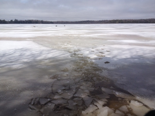We were on an Oneida County lake tonight, and the ice had obviously just busted off. A good section was full of ice floes, and there was weeds and trash everywhere. Fishing wasn't real good either...
