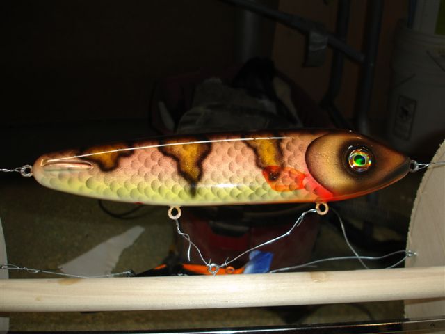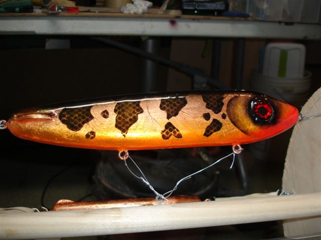| Jump to page : 1 Now viewing page 1 [30 messages per page] More Muskie Fishing -> Basement Baits and Custom Lure Painting -> hellhound one in copperfoil |