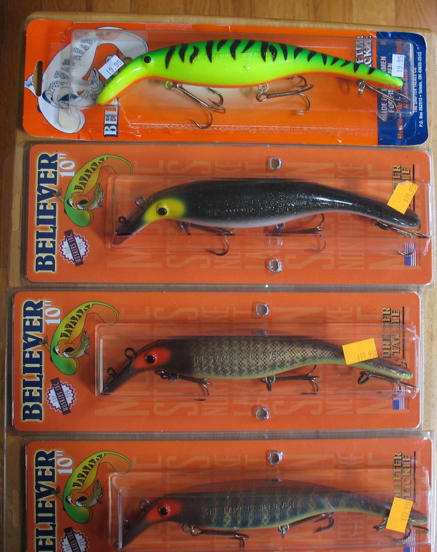 | Jump to page : 1 Now viewing page 1 [30 messages per page] Muskie Fishing -> Buy , Sell, and Trade -> Four 10" Believer Lures in Packages for Sale! |