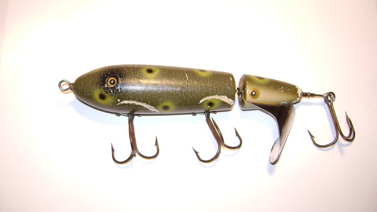 Yup, old Le Lure water thumper. ut an industrial staple around the top of the tail so it doesn't pivot as mentioned, and drip some gun stock varnish around the slit. Good to go. If you don't plan to use it and want to sell, don't staple, as could reduce value.