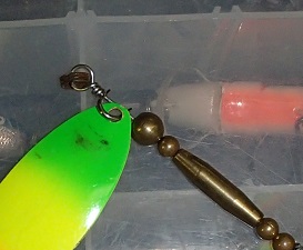 Try a bigger bead as the 1st one behind the clevis. It will hold out the blade farther out and it can start spinning right away. See it here on Joe Bucher's Willowbuck.