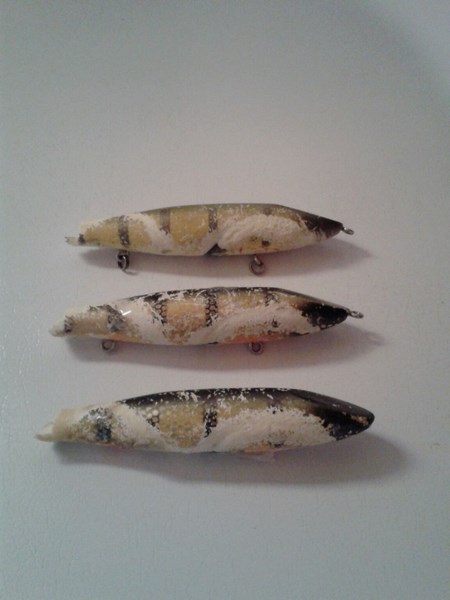Posts: 139 Location: Aurora IL | old perch m9 grandma with 20 plus. lip is broken off and hook grooves in the sidesare almost thru the bait. its now retired Bill | ||