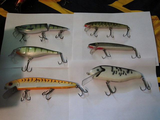 All PM's answered. Tuff shad, all cranes, unknow deep diver, grandma, rapala, storm, krisco jr, and Myers are pending. I also have a 10" jointed believer in perch I will sell for $10 and a 6" jointed loke in olive frog for $15 and can send pic if anyone is interested.