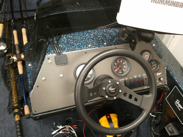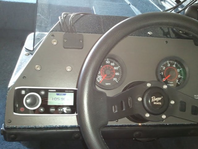 I've spent a lot of money upgrading all the rod holders and electronics and now I need to install the stereo. I love having some tunes on the water and I bought a Fusion Ipod stereo system and it has 2 - 6" speakers. The boat is a 1995 and sure functional and I love the layout, but that layout is all business and leaves virtually no room for mounting speakers or stereo other than the stereo in the dash and one of the speakers in the console below the horn (see pics) and the other under console pointing towards rear casting deck.
