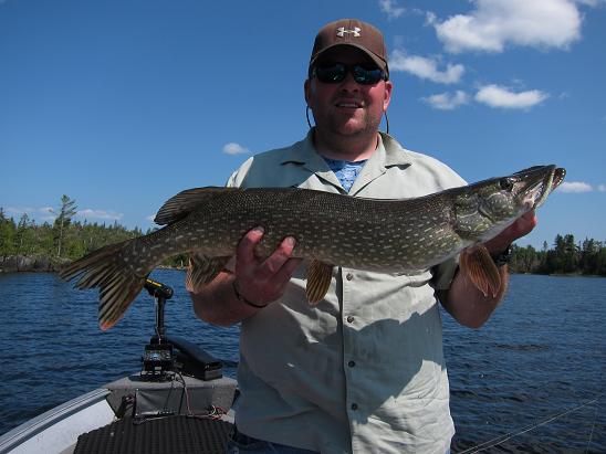 Posts: 1188 Location: Iowa | August 10-17, 2013, I had the pleasure of spending a week fishing with my father. We were fortunate enough to spend that week at one of the best run lodges and with the best group of people we have ever been around. Let me tell you about this place. A place where a short plane ride takes you to a secluded 60,000 acre lake known for its clear water and abundance of world class fish, a place where a smiling face meets you on the dock and make you feel like you’re right at home, a place where a hot shower is waiting for you after a long day on the water, a place where home cooked meals meet you for breakfast and dinner, a place where the lodging is spacious and comfortable, a place where you can escape from reality and venture to tranquility. Where is this place you ask; Nielsen’s Fly-In Lodge operated by Don and Lynn Pursch. From the minute you step off the plane till the minute you step back on the plane, the staff at Nielsen’s makes you feel like you are one of their own. Being that the lake is a fly-in only; the fishing pressure is next to non-existent. The only boats on the lake are those from Nielsen’s. Muskies act like muskies having seen very few lures, with the possibility of seeing a world class muskie on every cast. Deep shoals give way to rocky reefs, shallow bays create lush cabbage beds and huge neck downs create massive water flow. Loons sing out their harmonious cry, eagles soar over head and giant muskies roam the waters. Day 1 of our trip brought a day on the water with the legendary Don Pursch. Just fishing in his boat is a learning experience in and of itself. Yet being able to joke and talk with Don as though you are one of his great friends shows the true character of a great man passionate about muskie fishing and living life to its fullest. We saw about 10 fish shile fishing with Don and had a few swings and a miss, but being able to share the boat with such a true pioneer of muskie fishing was a joy in and of it self. Day 2 brought dad and I venturing out on our own to spots we had seen fish from the day before and some spots we had seen fish on trip to the lake 3 years ago. We saw a few fish in the morning, nothing terribly big though. So we go to the fabled spot from the original In-Fsherman production of “The Greatest Muskie Film Ever Made” where Don and Larry Dahlberg catch an enormous muskie late in the evening and where Don and Jim Linder catch another enormous muskie in another segment of that video. Having fished this spot multiple times in the past and not seeing any fish, we knew it was a huge spot and a must stop every time you go by. So we start fishing and see a small fish in the weeds. As we come around the outside of the jug I cast my squirrely phantom toward the spine and who shows up: Gigantopithecus of the muskie world. This fish is probably 55-56 inches and wider on the head than my stretched out phantom by a good distance. So big you could set a frying pan on her head and fatter behind the head than her head is wide. She closes the distance on the bait with one flick of the tail, I speed it up and she comes right to the boat only to keep swimming right under it never to be seen again. The GoPro was running though and got the encounter with this 50 pound class fish. So as the super approaches we eat dinner and head back out with the anticipation that the coming sunset and major feeding window may get this fish to eat. We stopped at a spot we raised a 50-52 class fish on the way out just to kill some time before heading to try for the bigger girl. We fish around the first spot and see this 50-52 inch class fish twice but she won’t eat. So we go to try for the 50 pounder, she doesn’t show herself at all. So on the way in we stop to see if the 50-52 is still active, I make a couple casts and her she comes, goes around the figure 8 about 6 times and crushes my cowgirl. A few seconds later we slide her into the net and she goes 52 x22.5 and is my second biggest fish ever. Day 3 brings bright sun and calm winds, back to the milk run from the day before and a little exploring. We fish all morning and see 4-5 fish with one being around the 50 inch mark. We eat lunch and head back to the fabled 50 pounder, who doesn’t sow herself. So we head south to a weedy saddle with a rock bar in between 2 islands. Dad raises and 48 inch class fish, then a 44-45, then a 38-40, then a 50+. The fish are loaded in this weed bed, so we make a second pass and nothing shows. So we go inside out and cast shallow to deep and here comes the 50+, dad goes around about 6 times and she looses interest. So I try to teach him how to figure 8 a little better and out of the weeds a 44.5 blasts my bait and into the net. Day 3 ends never seeing the 50 pounder again Day 4 brings bright sun and flat calm again. So we go to a spot I lost a 40 pounder from 3 years ago, dad makes 2 casts and a 36-38 inch class fish comes out and eats the bait on the figure 8 and then proceeds to go vertical and throw the bait before I can get the net under it. We fish the rest of the day seeing about 10 fish, stopping to try the 50 pounder every time we pass by, still no dice. Day 5 brings bright sun, flat calm and hot. We go back to the same starting spot from Day 4 and get a 35.5 that blasted my squirrelly phantom when it hits the water. We fish all day and see about 12 fish with a couple swings and a miss and got a 35 inch pike and a 17 inch largemouth that was built like a football but no other muskies. As we begin to fish a couple more spots for the day, dad hooks a small pike. We get it in the boat and start to unhook it only to have it put a treble on the depth raider into dad arm passed 2 of the barbs and buried all the way to the shank. Big problem and time to go find Dr. Don, who performs the string removal technique and we are back fish. Day 6 brings the final day and dad still has yet to catch a muskie. We started much the same as the day before, wit