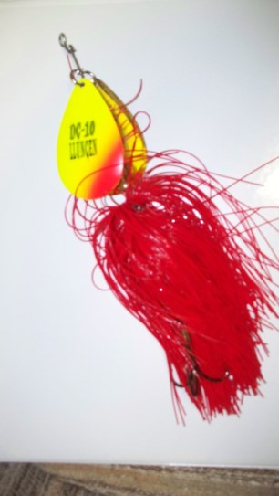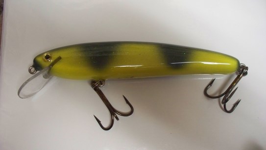 Muskie Fishing -> Buy , Sell, and Trade -> Llungen DBL 10, 8" Tuscarora Cedar Perch & Smuttley Dog Glider