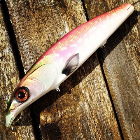 Posts: 432 Location: mpls | Been a while since I've posted anything on this site.Thought I would share a new style and a couple of new to me colors:) This is the new 12" Rumor dive and rise bait . It fishes easily down to 10 feet and has a great wiggle on the pull and pause. It has a much different action than the "Tremor" dive and rise that I have been making for the last ten years. The "Rumor" has a much more straight up and down action with long "blowouts to the side. Already fished approved with a couple of 50"plus fish Hope you like Joe | ||