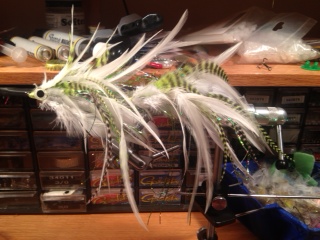 Posts: 1663 Location: Kodiak, AK | ....no crazy halibut flies this time. These guys are headed to Wisconsin waters... All about 12" long, tandem hooks. And UV being the rage, I included a pic of them under UV light. From top, walleye, white, bright perch, natural perch. Dunno if the UV works, but it looks good when lit up! Edited by esoxfly 9/30/2013 1:50 AM Attachments ---------------- walleye 100.JPG (60KB - 118 downloads) white 100.JPG (58KB - 129 downloads) bright perch 100.JPG (59KB - 120 downloads) nat perch 100.JPG (58KB - 129 downloads) uv100.JPG (42KB - 131 downloads) | ||