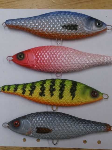 | Hello, I am new to this nice forum. My name is David and Im from Sweden. I started to make lures 4 months ago and now I am addicted to it :)! This is my first own model. Jerkbait glider. 15 cm for pikefishing! |