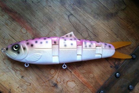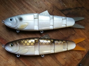 Posts: 1504 Location: Oregon | It's been some time since I posted a picture of any baits here so I thought it would be fun to post a couple of my new swimbait. The bait is 10 inches long, about 7.5 ounces. You can burn it, slow swim it, walk it just like any glider, or wake it on the surface. Solid high impact plastic and a soft replacable tail. Here is a couple pictures of the lure and a video clip for those interested. Hope everyone is doing well..............and thanks. Jed Video Link: http://youtu.be/3lFprCT7TUs Edited by RiverMan 10/31/2013 9:47 PM Attachments ---------------- shatter.jpg (28KB - 142 downloads) sucker4.jpg (73KB - 136 downloads) | ||