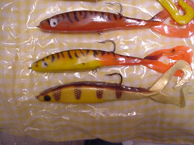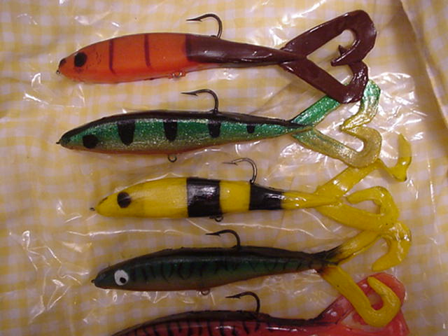 Dude, what length weight etc. are those, and do you have a shad pattern? I'm thinking they would be great trolled off planers or even cast for rockfish here, as we use poagy tails for casting/trolling and your baits look a lot better!