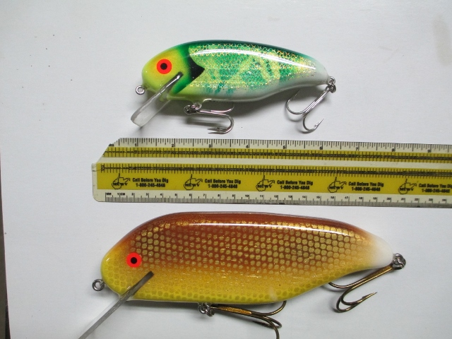 For sale. Both baits are made of cedar and have rattles in them.