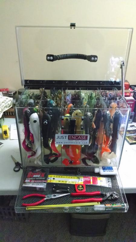 I have never attended a musky show so Im looking forward to going. Like many of you my bait collection has out grown my current storage system. Well they all fit but its a tangled ugly mess. I see Just Encase will be at the Chicago Show and this system will work great on my boat. Does anyone know if he will have most of his standard sizes for sale there or will there be samples only and they are built to order?