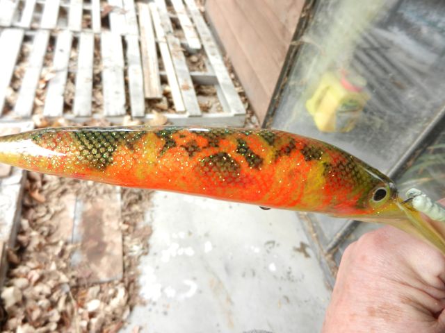 | Jump to page : 1 Now viewing page 1 [30 messages per page] More Muskie Fishing -> Basement Baits and Custom Lure Painting -> Marbled Minnow Lure |
