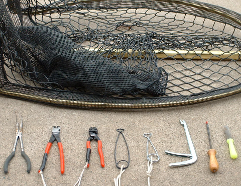 Posts: 1936 Location: Eau Claire, WI | The attached file is a clip from one of my seminars. I cary two of everything except the net just in case one goes overboard. You will notice lanyards on my knipex as I've learned the hard way. I attach about a 6-7' piece of line between the small and large jaw spreaders I tie the trailing end to a clete or side rail or stick the unused spreader in my back pocket. The reason... if a fish ever gets away with one of these in their mouth it is as good as dead...they will never be able to shake it on their own. A good set of release tools including a quality net, hook cutters (Knipex is the best and worth the money they can be purchased through Esox Angler) and other supporting tools will cost as much as a good rod all together. These are a must if you are serious about executing proper catch and release techniques, in the best interest of the fish. REMEMBER...keep the head under water when working on the fish if at all possible. That is the part of the fish that does the breathing and they can't breath any better with their head out of water as we can with our heads in it... | ||