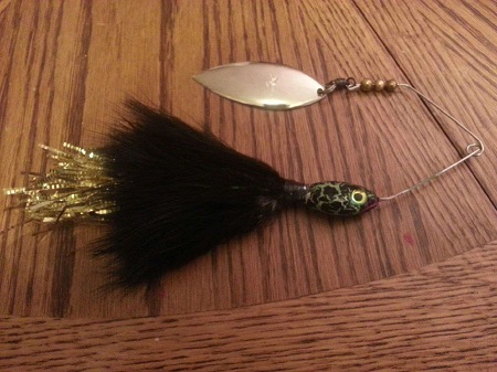 More Muskie Fishing -> Basement Baits and Custom Lure Painting -> Crackle Frog Spinnerbait