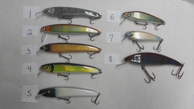 | Jump to page : 1 Now viewing page 1 [30 messages per page] Muskie Fishing -> Buy , Sell, and Trade -> Baits- some rare and custom |