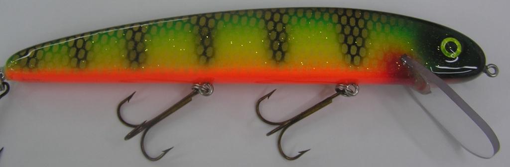 Hi Guys, I have two 11 INCH baits here left over from the Fall run. The 11 inch Super Magnum is .080 thick Eastern White Cedar from the ( Adirondack Mountains) . Lip is 3/16 thick Poly Carbonate. Screw Eyes are 1 1/2 long epoxied in. Tow eye is 2 inches long and epoxied in. Split rings are 7 Heavy Stainless 200 pound and the hooks are 6/0 Mustad 3551. Three top coats of Envirotex. 30.00 each or 55.00 for the pair Pay pal preferred. Free Shipping. One fire Perch One Whitefish.