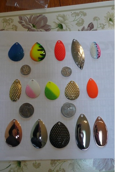 Posts: 48 | Shipping - $6 P.O. Box - will try to work with smaller orders on freight if needed. Of course I consider trades. Quantity * Style * Size * Color Price 23 * Indiana - fluted * #5 * Gold * .20 ea 18 * Indiana - fluted * #5 * Chart. * .20 ea 26 * Indiana - fluted * #5 * nickel * .20 ea 48 * Indiana * #5 * Gold * .15 ea 44 * Indiana * #5 * Green / Chart. * .20 ea 37 * Indiana * #5 * Chart. / Orange * .20 ea 37 * Indiana * #5 * Chart. * .20 ea 87 * Indiana * #5 * Orange * .20 ea 100 * Indiana * #5 nickel * .15 ea 32 * Indiana * #6 * Nickel * .20 ea 47 * Indiana * #6 * Gold * .20 ea 80 * Indiana * #6 * Orange * .25 ea 41 * Indiana #6 * Chart. * .25 ea 17 * Indiana * #6 * Blk. Nickel * .25 ea 16 * Indiana - fluted * #7 * Gold * .30 ea 8 * Indiana - fluted * #7 * Blk. Nickel * .30 ea 7 * Indiana - fluted * #7 * Orange * .30 ea 12 * Indiana - fluted * #7 * Chart. * .30 ea 7 * Indiana - fluted * #7 * Nickel * .30 ea 20 * Indiana - hammered * #7 * Copper * .25 ea 72 * Indiana * #7 * Orange * .25 ea 20 * Indiana * #7 * Copper * .25 ea 34 * Indiana * #7 * Chart. * .25 ea 65 * Indiana * #7 * Gold * .25 ea 109 * Indiana * #7 * Nickel * .25 ea 3 * Indiana * #5 * Designer Rainbow * .40 ea 8 * Indiana * #4 * Designer Rainbow * .40 ea 8 * Indiana * #3 * Designer Rainbow * .40 ea 5 * Indiana * #4 * Bluegill * .40 ea 19 * Willow * #7 * Nickel * .25 ea 5 * Willow * #7 * Blk. Nickel * .30 ea 10 * Willow * #7 * Chart./ Orange * .30 ea 15 * Willow * #7 * Gold * .25 ea 9 * Willow * #7 * Blk. Nickel * .30 ea 9 * Willow - hammered * #6 * Blk. Nickel * .20 ea 12 * Willow * #6 * Chart / Orange * .20 ea 31 * Willow * #6 * Nickel * .15 ea 10 * Willow * #6 * Blk. Nickel * .20 ea 22 * Willow * #6 * Gold * .15 ea 5 * Willow * #5 * Glitter Nickel * .25 ea 6 * Willow * #4 * Glitter Nickel * .25 ea 4 * Willow * #3 * Glitter Nickel * .25 ea 259 * Colorado - hammer * #5 * Gold * .25ea 262 * Colorado - hammer * #5 * Nickel * .25ea 243 * Colorado * #5 * Gold * .20 ea 247 * Colorado * #5 * Nickel * .20 ea 32 * Colorado * #5 * red/white * .25ea 168 * Colorado * #5 * pink/white * .25ea 177 * Colorado * #5 * chart/green * .25ea 185 * Colorado * #5 * chart/orange * .25ea 6 * Colorado * #5 * green glitter * .25ea 4 * Colorado * #5 * fire tiger * .25ea 5 * Colorado * #5 * white * .25ea 9 * Colorado * #5 * blue glitter * .25ea 6 * Colorado * #5 * chartreuse glitter * .25ea 4 * Colorado - hammer * #7 * Blk. Nickel * .30 ea 1 * Colorado - hammer * #7 * Gold * .30 ea 3 * Colorado - hammer * #7 * Nickel * .30 ea 23 * Colorado * #7 * Blk. Nickel * .30 ea 10 * French * #8 * Nickel * .25 ea 10 * French * #8 * Gold * .25 ea 14 * French * #7 * Nickel * .25 ea 10 * French * #7 * Gold * .25 ea 28 * French * #6 * Gold * .25 ea 19 * French * #6 * Copper * .25 ea 8 * French * #6 * Nickel * .25 ea 34 * French * #5 * Nickel * .25 ea 17 * French * # # 5 * Copper * .25 ea 27 * French * #5 * Gold * .25 ea 40 * French - diamond * #4 * Orange * .20 ea 20 * French - diamond * #4 * Nickel * .20 ea 19 * French - diamond * #4 * Blk. Nickel * .20 ea 19 * French - diamond * #4 * Gold * .20 ea 7 * French - diamond * #4 * Chartreuse * .20 ea 142 * French * #4 * Gold * .10 ea 38 * French * #4 * Nickel * .10 ea 20 * French * #4 * Copper * .10 ea 46 * French * #3 * Gold * .10 ea 21 * French * #3 * Copper * .10 ea 97 * French * #3 * Nickel * .10 ea 50 * French * #3 * Gold * .10 ea 100 * French * #2 * Nickel * .10 ea 96 * French * #2 * Gold * .10 ea 20 * French * #2 * Copper * .10 ea Attachments ---------------- P1030075 (Copy).JPG (91KB - 107 downloads) P1030079 (Copy).JPG (68KB - 93 downloads) P1030085 (Copy).JPG (82KB - 101 downloads) | ||