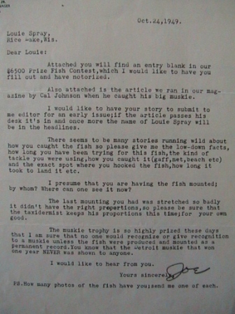 "The hall's report that is posted on their Web site (www.freshwater-fishing.org) does not include thorough, good science, because we were not asked to do thorough, good science…In general, I don't like science to be used as a tool to manipulate opinions," Arnold said. "You should never go to several experts and cherry pick the results you want." -Dr. Douglas Arnold, March 4, 2006 It's well documented that Spray received two Martin outboard motors in 1949, as well as plenty of other cash, prizes, and TONS of extra bar business from these bogus records, this alone points to him being monetarily motivated. So, I'm completely baffled why he would even mention it unless he wants us to somehow believe that Mr. Spray only received these smaller $30 prizes, while his partner in muskie crime, Mr. Cal Johnson, received a brand new car for his 1949 world record. The evidence overwhelmingly points to Mr. Spray having turned 30-40lb muskies into cold hard cash by manufacturing them into 60-70 lb Frankenstein mounts, and when he was finished with the mounts, they burned up in a fire when he was the only one around, and later collected $15,000 insurance money for them. Seriously, if you want to believe that Spray was simply “lucky enough” to catch 3 world records just a short drive from his house, feel free to so… but please don't ask anyone who's looked at the evidence to turn their back on the truth, and accept such nonsense.