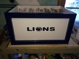The frame(navy blue) is made out of wood. The sides are white lexan from menards and the dividers are clear lexan