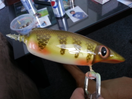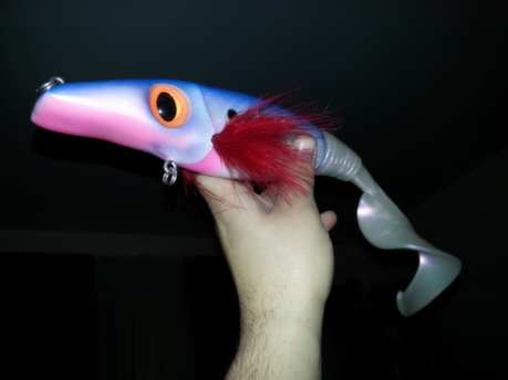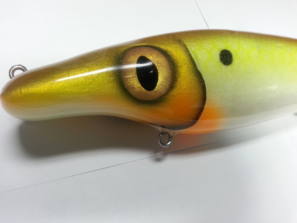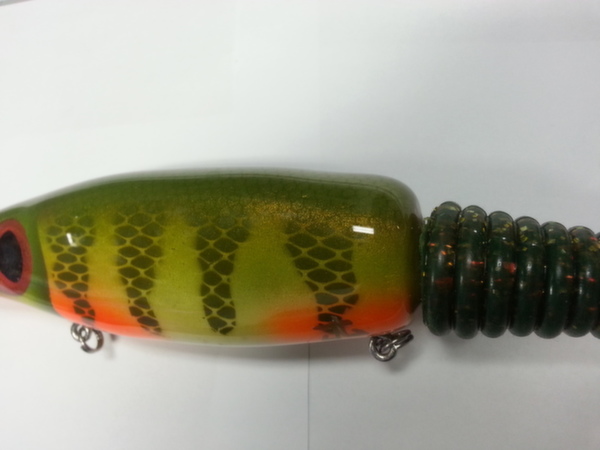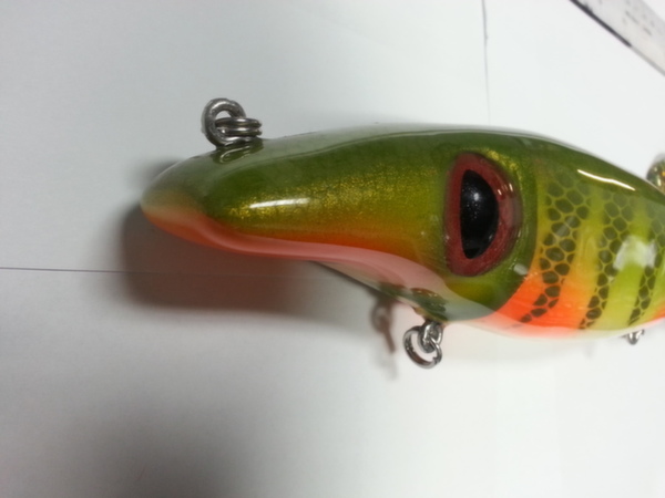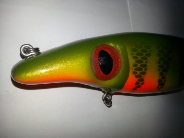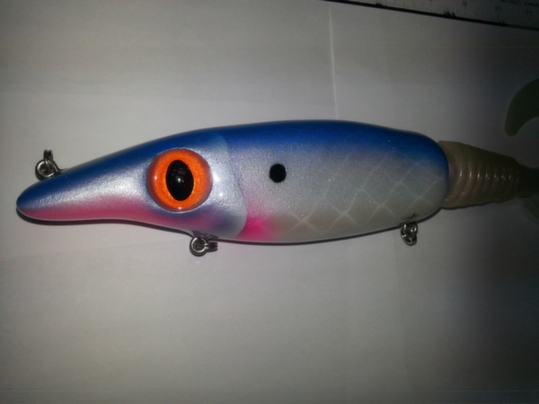 Posts: 360 Location: montreal, canada | i have this one painted recently i really like the patern !! it belong to mister Paul fec !! i'm also posting one of my pullbait with a little extra on it !! i added some maraboo to add some action!! it's make the bait glide longer on pull and also sink slower really like the action!!! Attachments ---------------- 20140421_110103.jpg (58KB - 150 downloads) 20140302_105545.jpg (65KB - 152 downloads) 20140421_110110.jpg (57KB - 151 downloads) 20140422_210410.jpg (40KB - 152 downloads) | ||