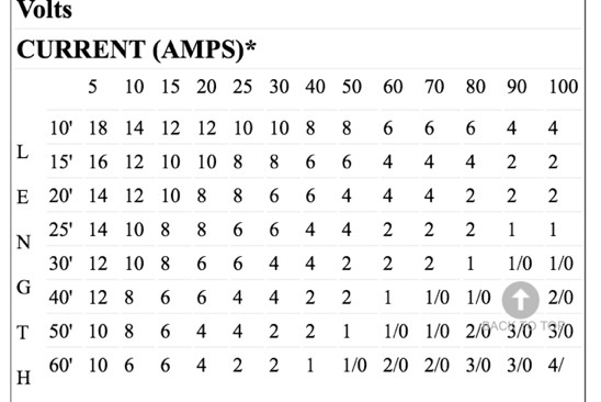 Posts: 791 Location: WI | Here's a table straight from a marine wire manufacture showing size for marine grade tinned wire based on length of wire and ampacity. Attachments ---------------- image.jpg (55KB - 152 downloads) | ||
