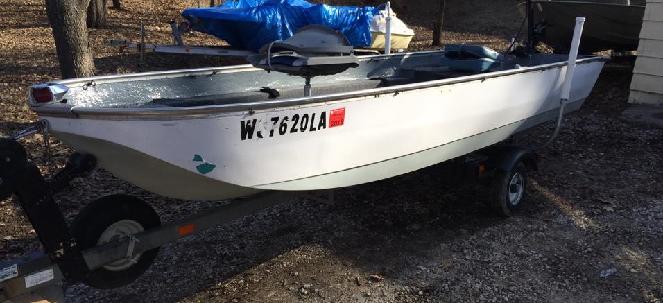 1979 15' Tri-Hull design and very stable for 2-3guys to cast out of all day. Trailers in great shape. Lights work. 1 7/8ball. Perfect fishing boat. Comes with trolling motor, anchor and cover.