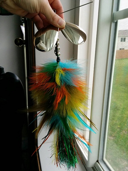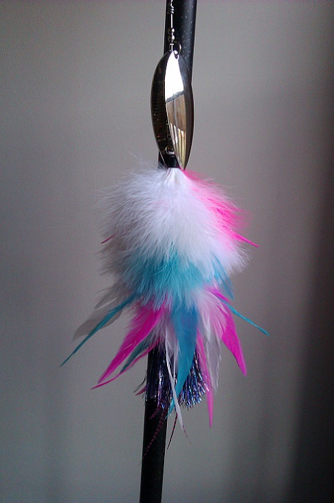 Posts: 1000 | Just had Ryan whip up a pink/black one with chrome/black chrome blades. It's easily the most impressive bucktail I've ever seen. It's almost a sin to throw the thing. Ben | ||