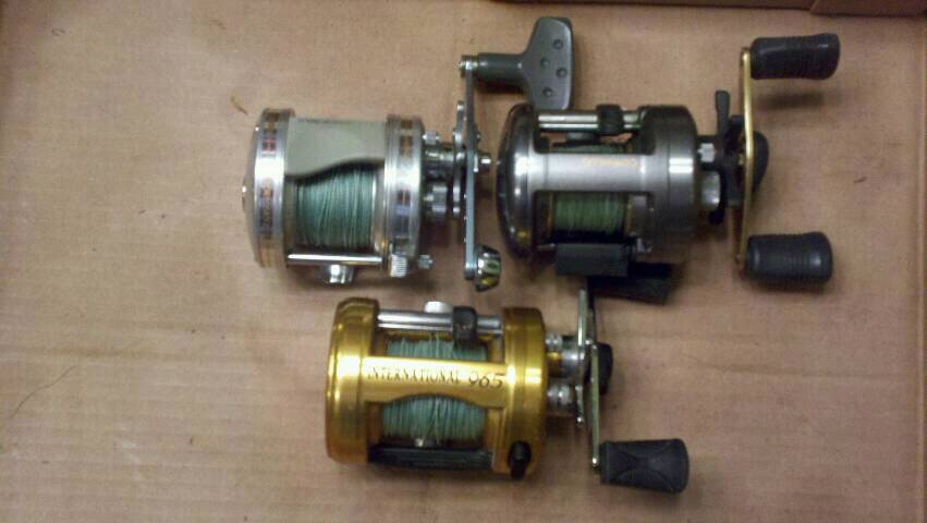 All prices shipped to your door. All work fine, just time to thin the herd. Cash or check only please. All are spooled with 65# pp. Any 2 reels shipped to one location drops the price $5 the pair. Tha ks for looking.