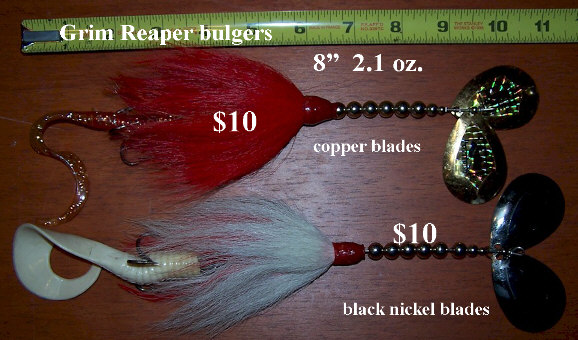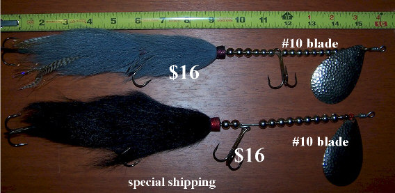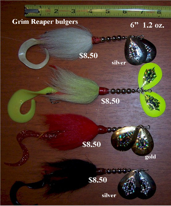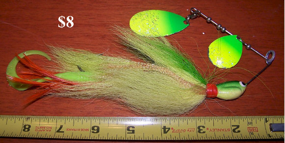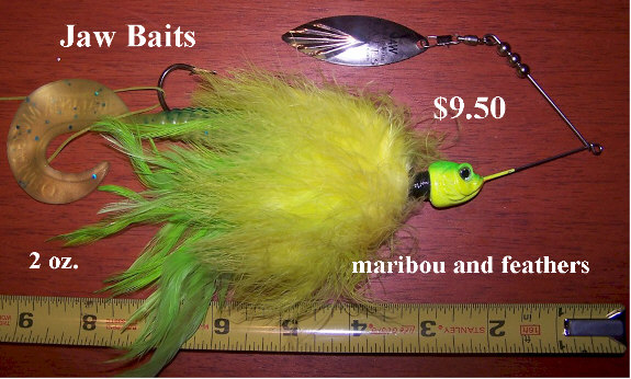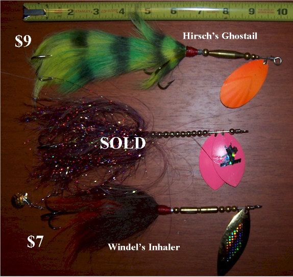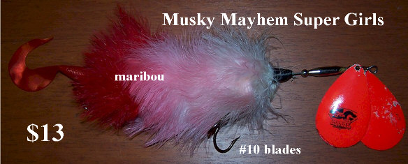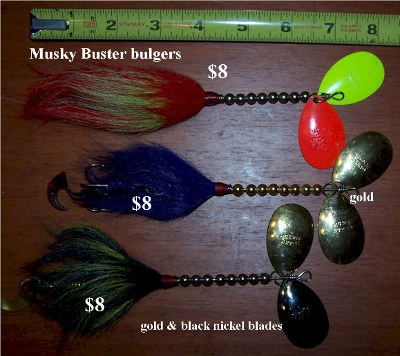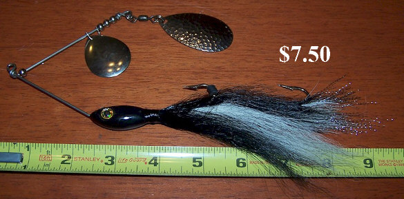 Posts: 551 Location: Columbus, Georgia | Moved to Georgia and am out-of-Musky range. Started Bass fishing. All baits are in excellent to pristine condition. Add $4.00 per bait shipping and $1.00 per bait thereafter. Over-sized baits may vary somewhat with shipping. PAY PAL preferred, though I will consider otherwise. Send me a PM and describe the baits you would like. Each photo has a name at the bottom. That helps identify the baits. I will verify the total amount with you and provide PAY PAL email. Please make notation of your address and the baits you have selected in the Pay Pal notation box. Thank you. THIS LIST IS UPDATED AS BAITS ARE SOLD 6-13-14 Edited by cjrich 6/13/2014 2:29 PM Attachments ---------------- Double Cowgirls #10s.jpg (77KB - 140 downloads) Double Cowgirls 3.jpg (59KB - 149 downloads) Double Cowgirls 21 (1).jpg (60KB - 156 downloads) Double Showgirls #6 blade.jpg (138KB - 141 downloads) Inhalers.jpg (96KB - 150 downloads) Inlines.jpg (66KB - 137 downloads) lightweight maribous tandem hooks.jpg (98KB - 141 downloads) Meat & Potatoes & Musky Mania.jpg (95KB - 149 downloads) Meat & Potatoes Maribou.jpg (89KB - 153 downloads) Meat & Potatos Maribou Tandem.jpg (66KB - 146 downloads) Musky Buster bulers.jpg (95KB - 128 downloads) Musky Buster bulger 2.jpg (71KB - 145 downloads) Shumway Flasher.jpg (57KB - 135 downloads) Single-blade feather bucktails.jpg (105KB - 158 downloads) Bucktails 6.jpg (69KB - 167 downloads) Bucktails 9.jpg (91KB - 167 downloads) Inhaler & Lungen Tail.jpg (68KB - 163 downloads) Showgirls 2.jpg (160KB - 143 downloads) Bucktails.jpg (93KB - 150 downloads) Showgirls #6 Blades.jpg (59KB - 139 downloads) Grim Reaper Bluegrass Beast.jpg (80KB - 157 downloads) Glitter Bitch.jpg (73KB - 150 downloads) G-Train.jpg (47KB - 153 downloads) Grim Reaper bulgers 2.jpg (120KB - 157 downloads) Grim Reaper bulgers.jpg (68KB - 148 downloads) Grim Reaper rubber tails.jpg (122KB - 139 downloads) Industrial Bucktails.jpg (55KB - 128 downloads) Maribou and Funky Chicken maribou tandem-hooks.jpg (96KB - 148 downloads) Musky Mayhem Super Girl # 10 baldes.jpg (45KB - 144 downloads) Slippery Sam Slowies 2.jpg (109KB - 159 downloads) Slippery Sam Slowies.jpg (109KB - 221 downloads) Slippery Sam Slowies 5.jpg (57KB - 172 downloads) Slippery Sam Slowies 3.jpg (82KB - 154 downloads) Slippery Sam Slowies 4.jpg (82KB - 181 downloads) Custom 1.jpg (64KB - 133 downloads) Custom 2.jpg (78KB - 143 downloads) Custom 3.jpg (79KB - 142 downloads) Custom 4.jpg (65KB - 143 downloads) Custom 5.jpg (72KB - 153 downloads) Custom 6.jpg (70KB - 135 downloads) Custom 7.jpg (60KB - 140 downloads) Custom 8.jpg (59KB - 150 downloads) Custom 9.jpg (68KB - 123 downloads) Custom 10.jpg (80KB - 131 downloads) Custom 11.jpg (54KB - 115 downloads) Custom 12.jpg (63KB - 124 downloads) Custom 13.jpg (71KB - 132 downloads) Grinder 1.jpg (83KB - 130 downloads) Grinder 2.jpg (63KB - 139 downloads) Grinder 4.jpg (102KB - 128 downloads) Jaw Baits 2.jpg (74KB - 119 downloads) Jaw Baits 3.jpg (74KB - 132 downloads) Jaw Baits 11.jpg (55KB - 117 downloads) Musky Bling 1.jpg (84KB - 133 downloads) Musky Bling 2.jpg (69KB - 130 downloads) Musky Bling 3.jpg (80KB - 130 downloads) Rad Dog 1.jpg (83KB - 132 downloads) Rad Dog 2.jpg (81KB - 138 downloads) showgirls 2.jpg (163KB - 112 downloads) Double Cowgirls 4.jpg (47KB - 135 downloads) | ||||||